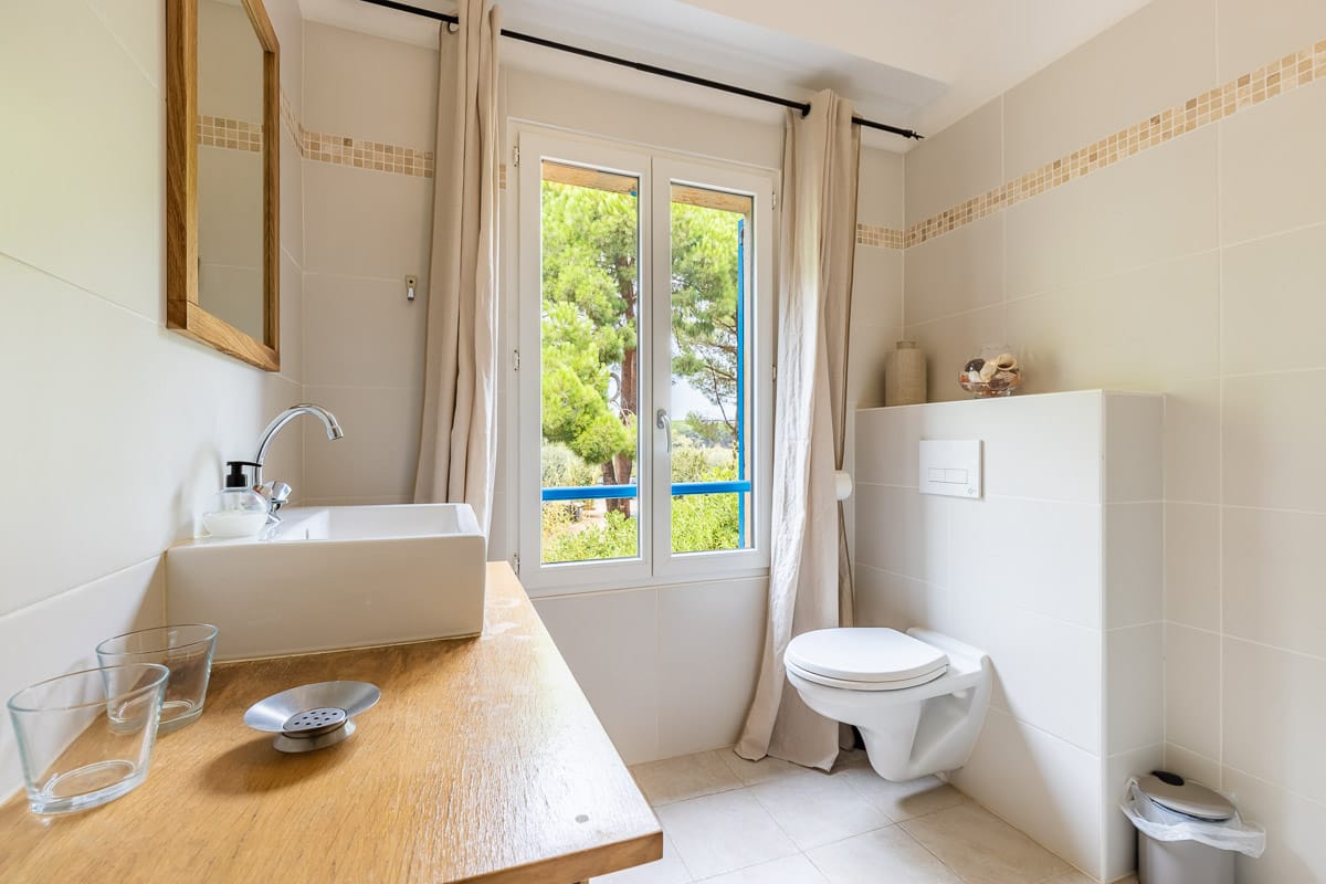 Afin de faciliter l’organisation de votre séjour, une des chambres bénéficie d’une salle de douche avec WC privatifs. Les deux autres partagent une seconde salle d’eau moderne avec WC, ce qui rend la cohabitation agréable pour tous.